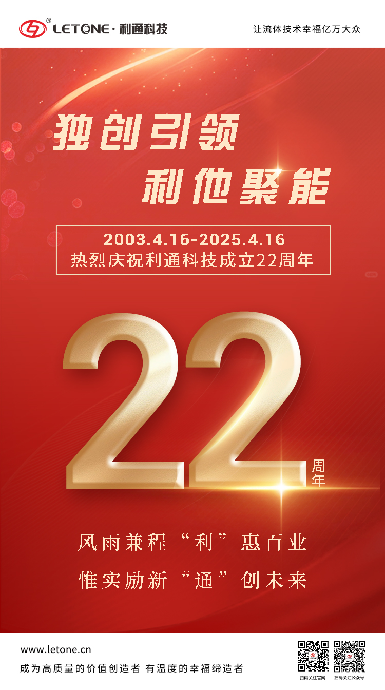 道阻且长行则将至,行而不辍未来可期。值此二十二周年之际,利通科技向一直以来给予我们信任与支持的客户、合作伙伴以及社会各界人士,致以衷心、诚挚的感谢。正是因为有你们的一路相伴,利通科技才能在激烈的市场竞争中破浪前行,不断发展壮大。展望未来,利通科技将始终坚守“成为高质量的价值创造者,有温度的幸福”的伟大愿景,持续深耕流体技术、高分子材料、超高压装备及应用服务三大核心业务领域,致力于将超高压流体技术创新应用推向新高度,全力打造成为一家技术独创、服务完善、价值引领的超高压流体产业链创新应用综合服务商,让流体技术幸福亿万大众,为社会创造更大的价值。