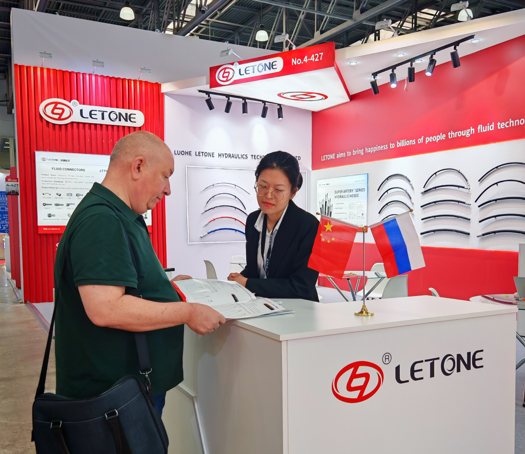 本届展会上,利通科技深度结合俄罗斯市场销售情况及客户需求反馈,携数款产品矩阵震撼亮相:从专为工程机械或苛刻环境“量身定制”的超级大力神低弯曲系列软管,到外覆超强耐磨材料、近乎零泄漏的超级大力神矿用软管总成;从突破压力极限、轻松应对混凝土切割与船舶清洗的超高压树脂软管,到能在-55℃极寒环境下“稳如泰山”输送液压油等介质的橡胶软管,再到适配多领域复杂工况的工业软管及连接件,利通科技一站式为工程机械、农用机械、石油钻采、建筑、清洗、水射流、钢铁、化工、能源、矿山、轨道交通、船舶制造等多个领域,提供高附加值产品与全方位集成解决方案,一经亮相成为全球客商关注的焦点,实现利通品牌影响力的新突破。