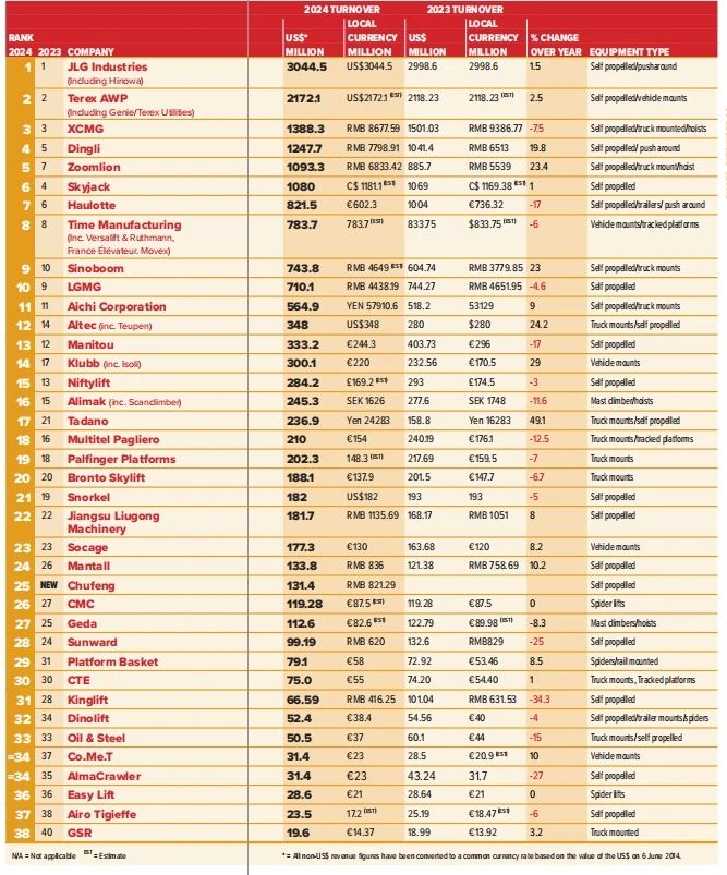 首页 | 新闻中心 | 行业新闻 | 2024全球高空作业平台制造企业20强发布,中国企业上榜5家