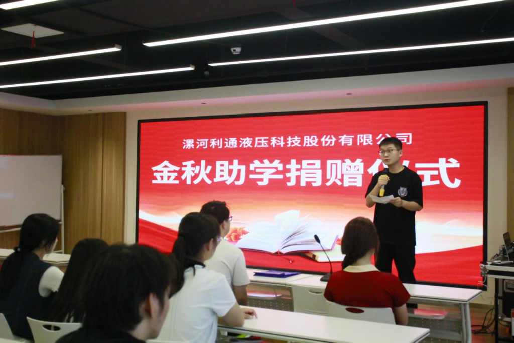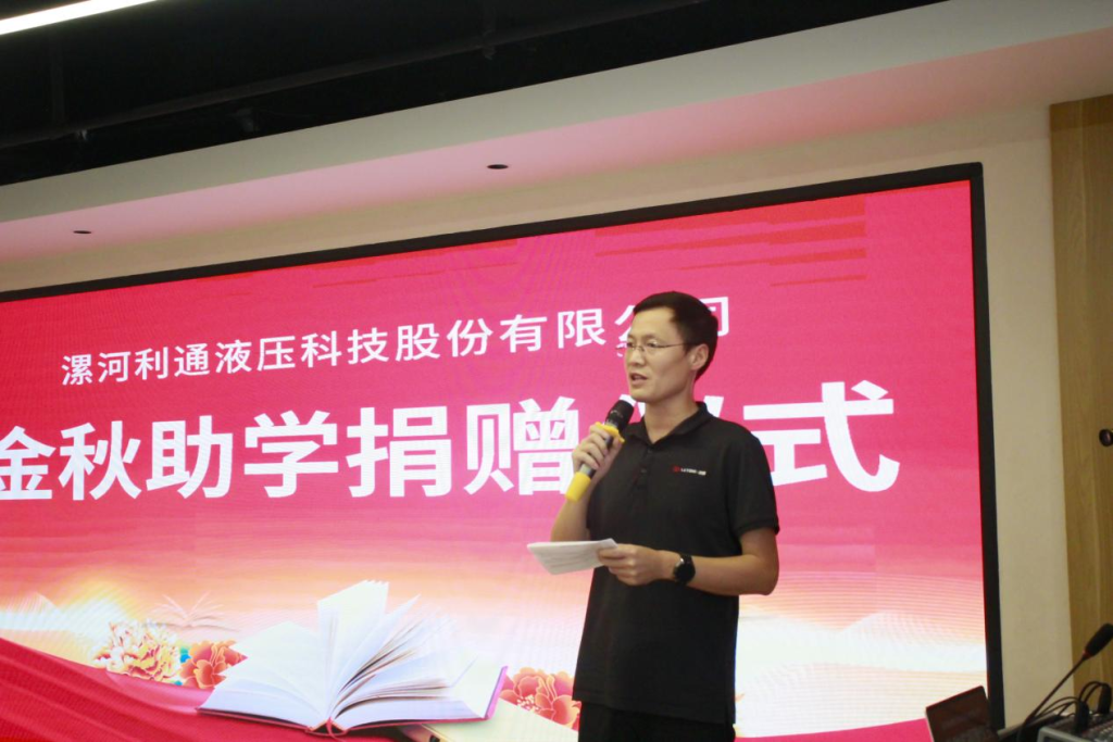 本次金秋助学活动由董事会秘书何军主持。他首先向在座每一位即将步入新征程的学子们表示热烈的祝贺,并阐述了助学金设立的深远意义。何总表示,“教育为立国之本,助学乃兴邦之策”,长久以来,利通科技始终秉持“利他聚能”的企业担当,积极投身公益事业。此次金秋助学活动,正是公司以实际行动践行这一理念的生动体现——通过汇聚企业之力,为广大学子的求学之路注入温暖与助力,让每一份向上的梦想都能轻装上阵,在成长的征途上更从容地舒展翅膀。